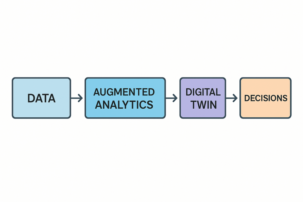 Augmented analytics provides the intelligence layer that powers digital twins.